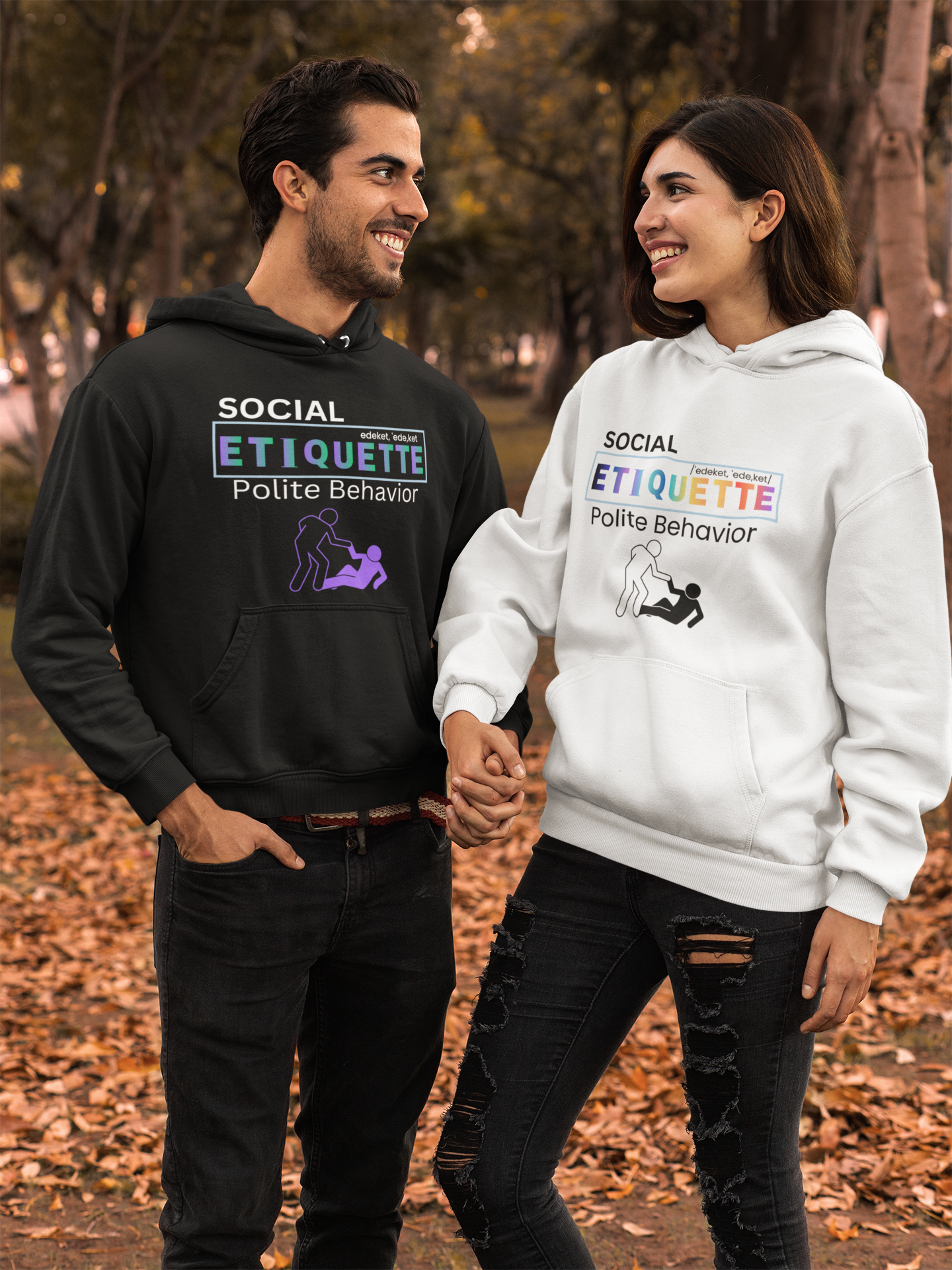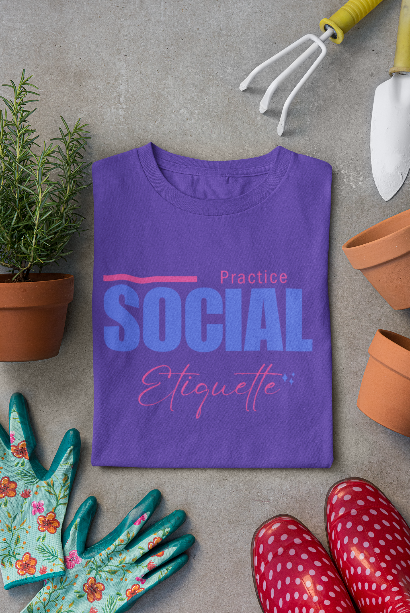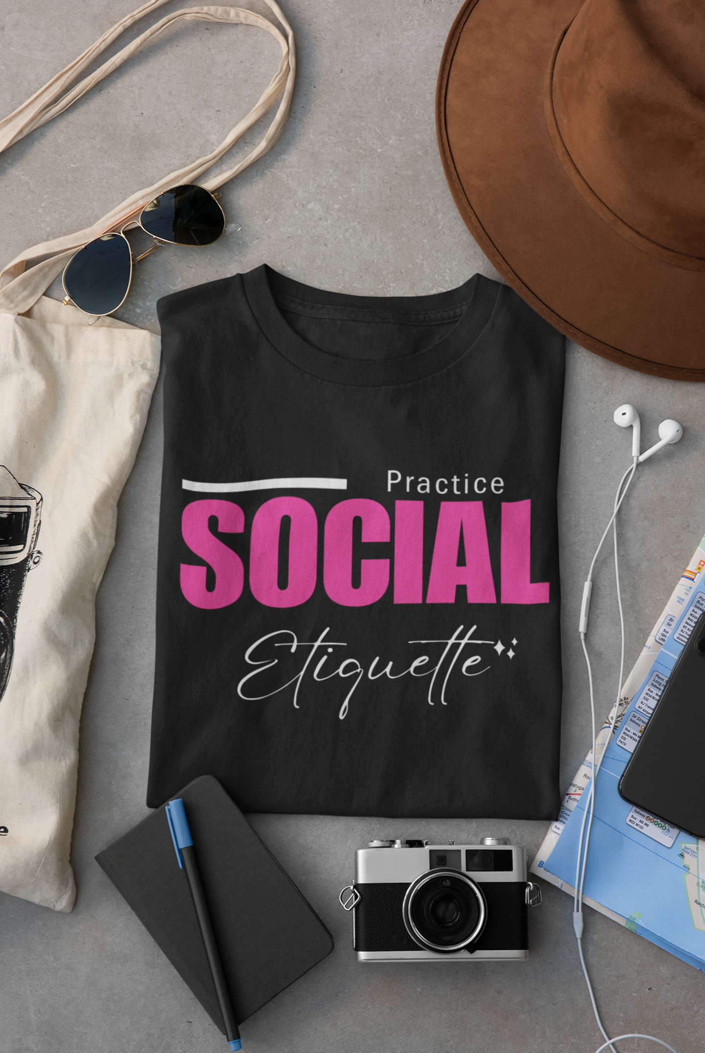 Wearing our "Social Etiquettes" T-shirt declares your commitment to promoting pleasant social interactions and making the world a more courteous and polite place, beyond merely being a stylish statement.