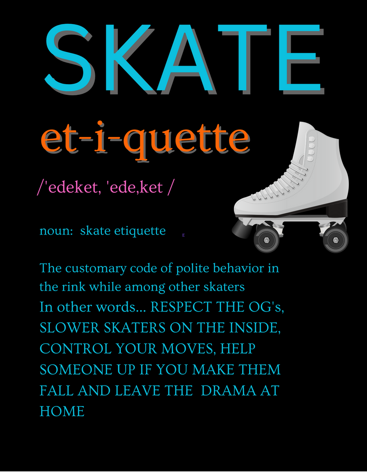 In other words... RESPECT THE OG'S, SLOWER SKATERS ON THE INSIDE, CONTROL YOUR MOVES, HELP SOMEONE UP IF YOU MAKE THEM FALL. AND LEAVE THE DRAMA AT HOME.